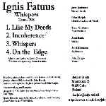 A banda finlandesa Ignis Fatuus mostra em seu quarto trabalho demo um progressivo consistente, com influências de metal melódico e extremo. O instrumental do grupo é a maior base progressiva que podemos identificar nas músicas. Apesar disso, ainda podemos observar algumas passagens de guitarra e teclado que nos remetem ao melódico, como fica claro na primeira faixa, "Like My Deeds".