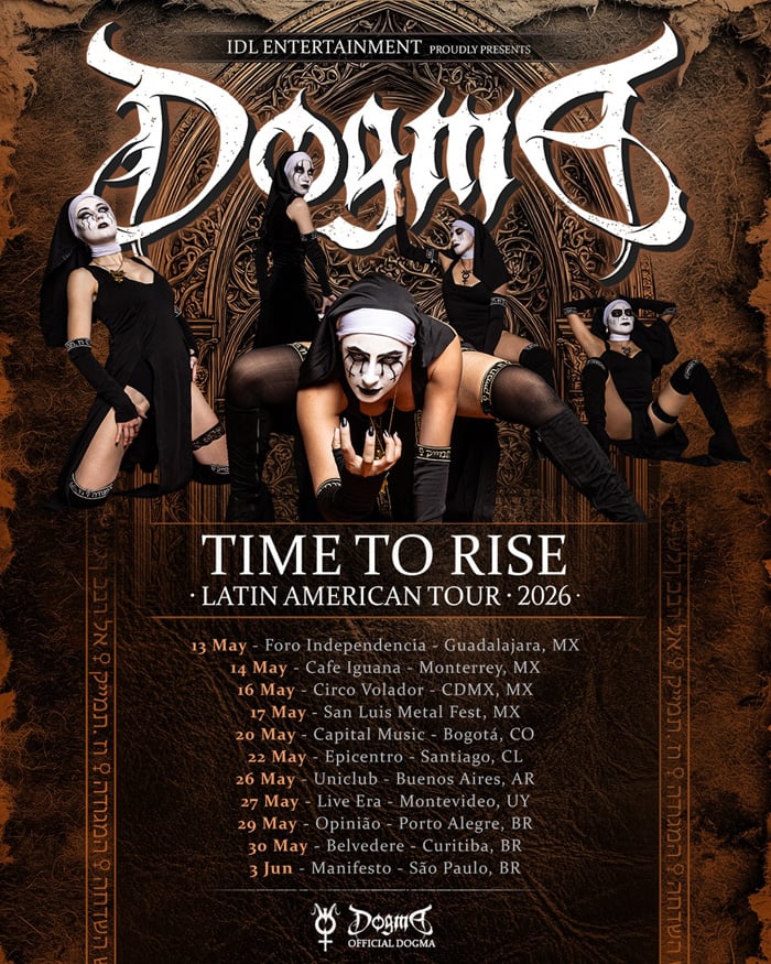 A misteriosa banda Dogma anunciou uma nova turnê pela América Latina, intitulada "Time to Rise - Latin American Tour 2026", programada para os meses de maio e junho. A sequência de shows contará com três apresentações no Brasil, passando pelas cidades de Porto Alegre, Curitiba e São Paulo.