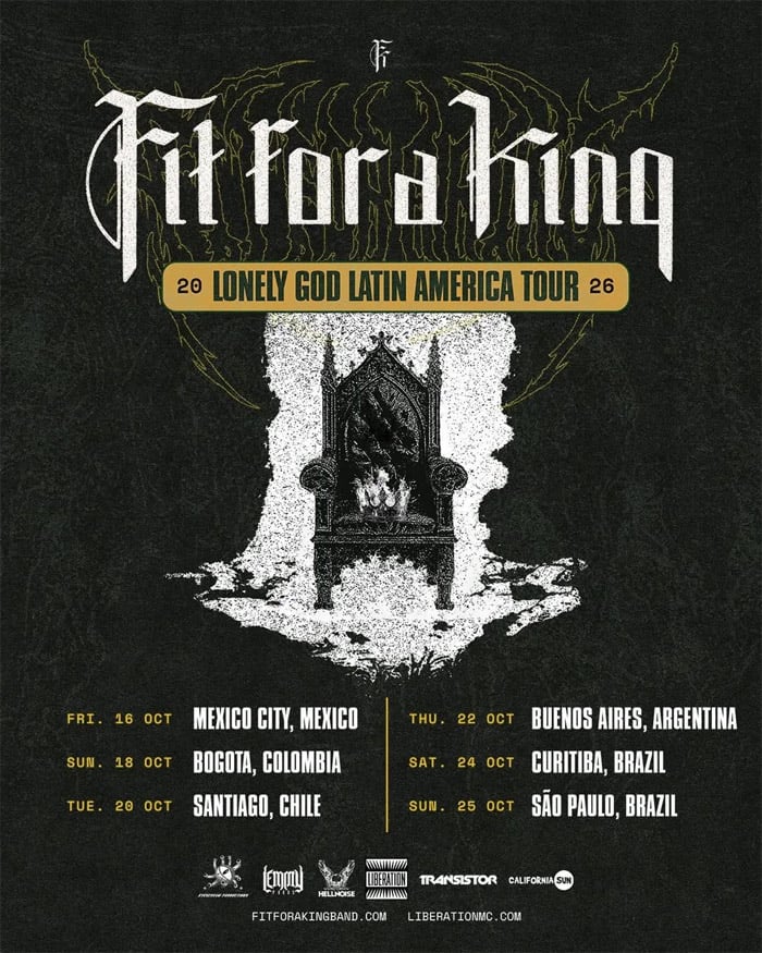 A banda americana de metalcore Fit For A King confirmou sua primeira turnê pela América Latina para o próximo mês de outubro. O Brasil receberá as duas últimas datas do giro. Eles acontecem em Curitiba (24/10, Jokers, ingressos aqui) e São Paulo (25/10, Carioca Club, ingresso aqui).
