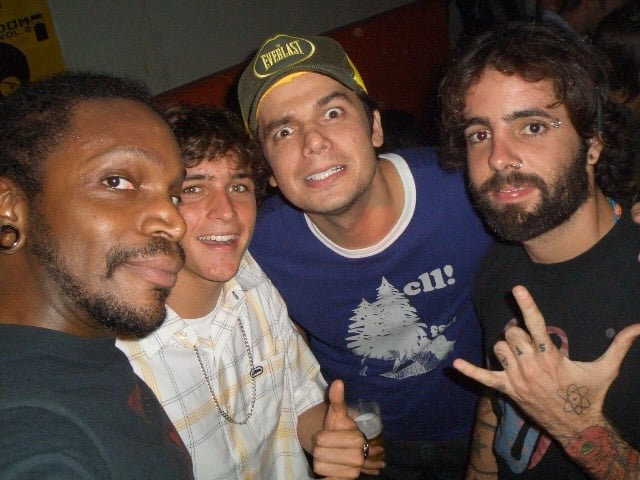 O músico estadunidense Derrick Green, vocalista do Sepultura, resgatou uma foto antiga - e bastante inusitada - nesta quinta-feira (23) e a compartilhou em seu perfil no Instagram. Registrada em 2002, a imagem mostra o cantor ao lado de Felipe Dylon, Tico Santa Cruz e Otaviano Costa.