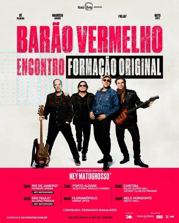 A turnê "Barão Vermelho Encontro" reúne integrantes da formação clássica e resgata a essência de uma das bandas mais importantes do rock nacional. O projeto marca o reencontro de nomes históricos como Roberto Frejat, Guto Goffi, Maurício Barros e Dé Palmeira, além da participação do guitarrista Fernando Magalhães. A iniciativa integra a label "Encontro", criada pela produtora 30e, responsável também pelo bem-sucedido retorno dos Titãs em 2023.