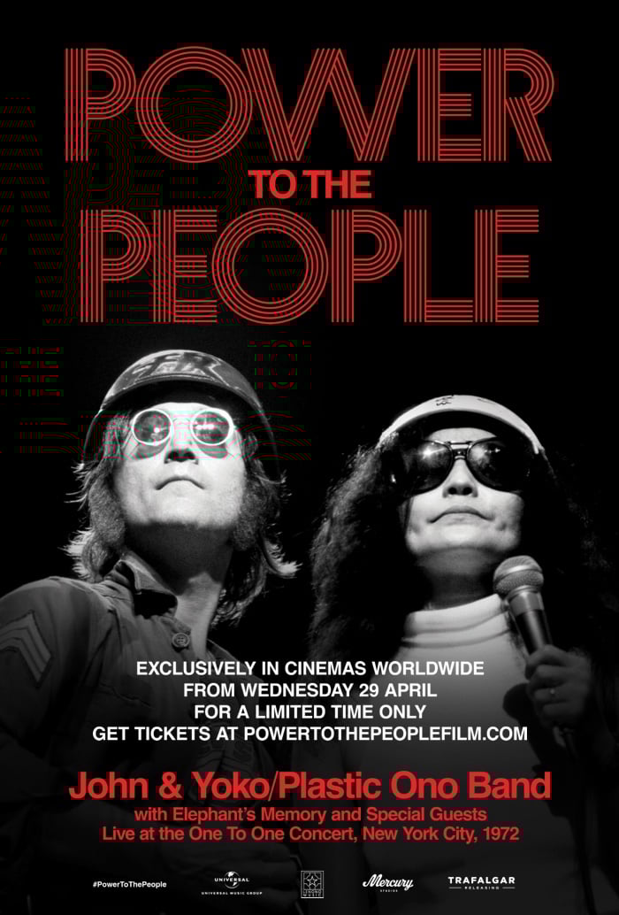 Cinemas de todo o planeta receberão, no dia 29 de abril, o filme "Power to the People: John & Yoko Live in NYC". A obra resgata os dois últimos shows completos da vida de John Lennon, ambos realizados no dia 30 de agosto de 1972 no Madison Square Garden, em Nova York.