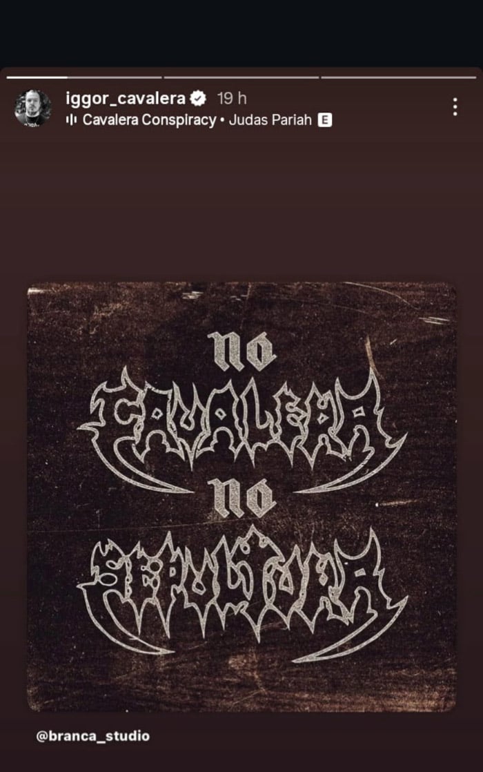 Essa longa história ganhou um episódio breve, mas carregado de simbolismo, na última terça-feira (9). Por meio dos stories de seu Instagram, Iggor compartilhou uma arte com a mensagem: "No Cavalera No Sepultura" ("Sem Cavalera, Sem Sepultura"). A frase - que já circulou em outras ocasiões associadas aos irmãos - surgiu sem explicações adicionais, ainda que não sejam exatamente necessárias.