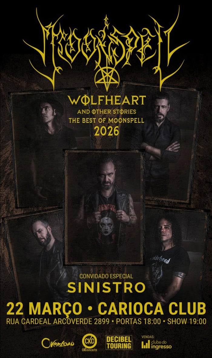 A produtora Overload confirmou o retorno dos portugueses do Moonspell ao Brasil para uma apresentação única e especial. A banda desembarca em São Paulo no dia 22 de março de 2026, no Carioca Club, para celebrar as três décadas de seu lendário álbum "Wolfheart". A noite promete ser uma celebração da música pesada lusitana, contando com a abertura da banda Sinistro, convidada especial, também da cena portuguesa.