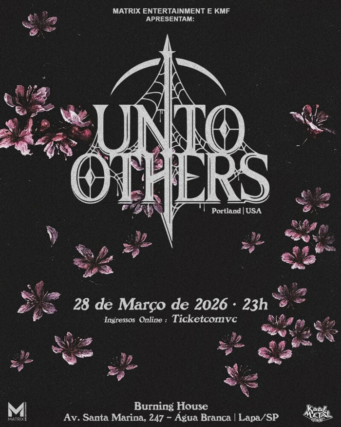 A banda norte-americana de gothic/heavy metal Unto Others confirmou sua primeira passagem pelo Brasil para 2026. O show acontece em São Paulo, na Burning House, dia 28 de março. Ingressos para a apresentação já estão à venda através da plataforma Ticket.com.vc.