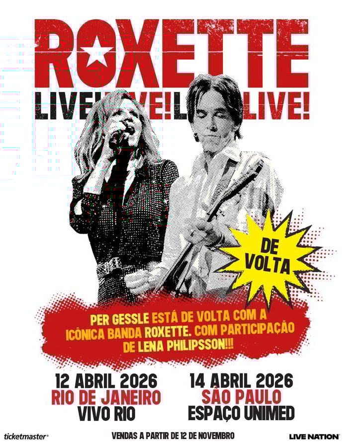 O Roxette confirmou dois shows no Brasil em abril do ano que vem. As apresentações acontecem no Rio de Janeiro (12/04 – Vivo Rio) e São Paulo (14/04 – Espaço Unimed). Será a primeira vinda do membro fundador Per Gessle ao país sem a companhia da cantora Marie Fredriksson, falecida em 2019. Ela é substituída atualmente por Lena Philipsson.