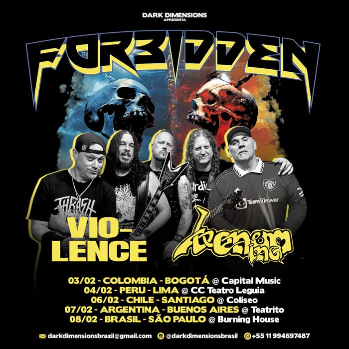 Forbidden, Vio-lence e Venom Inc. confirmaram uma turnê conjunta pela América do Sul para o início de fevereiro de 2026. O Brasil receberá justamente a última data, no dia 8. O show acontece na Burning House, em São Paulo, e ainda contará com o reforço da banda New Democracy.