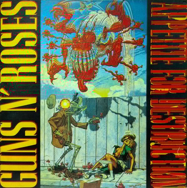 A história começa antes do estúdio, relata a Ultimate Guitar. Axl Rose, rato de bancas e fã de arte underground, se deparou com uma pintura de 1978 do artista Robert Williams, justamente chamada "Appetite for Destruction". A imagem mostrava um robô agressor sendo surpreendido por uma criatura vingadora, um choque visual pensado pra cutucar nervos. Axl se apaixonou pela peça e quis duas coisas: o título do quadro e o quadro na capa.