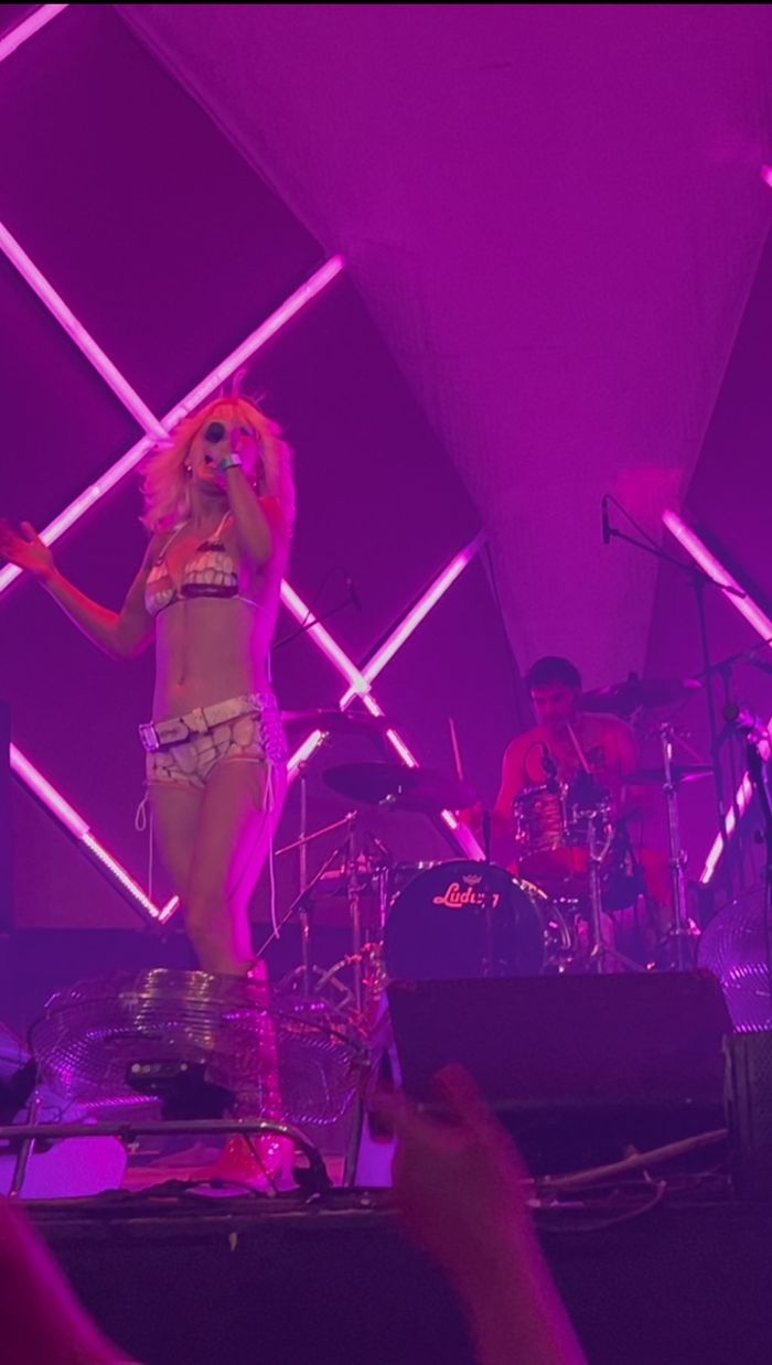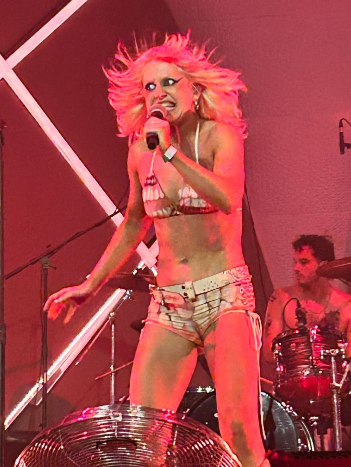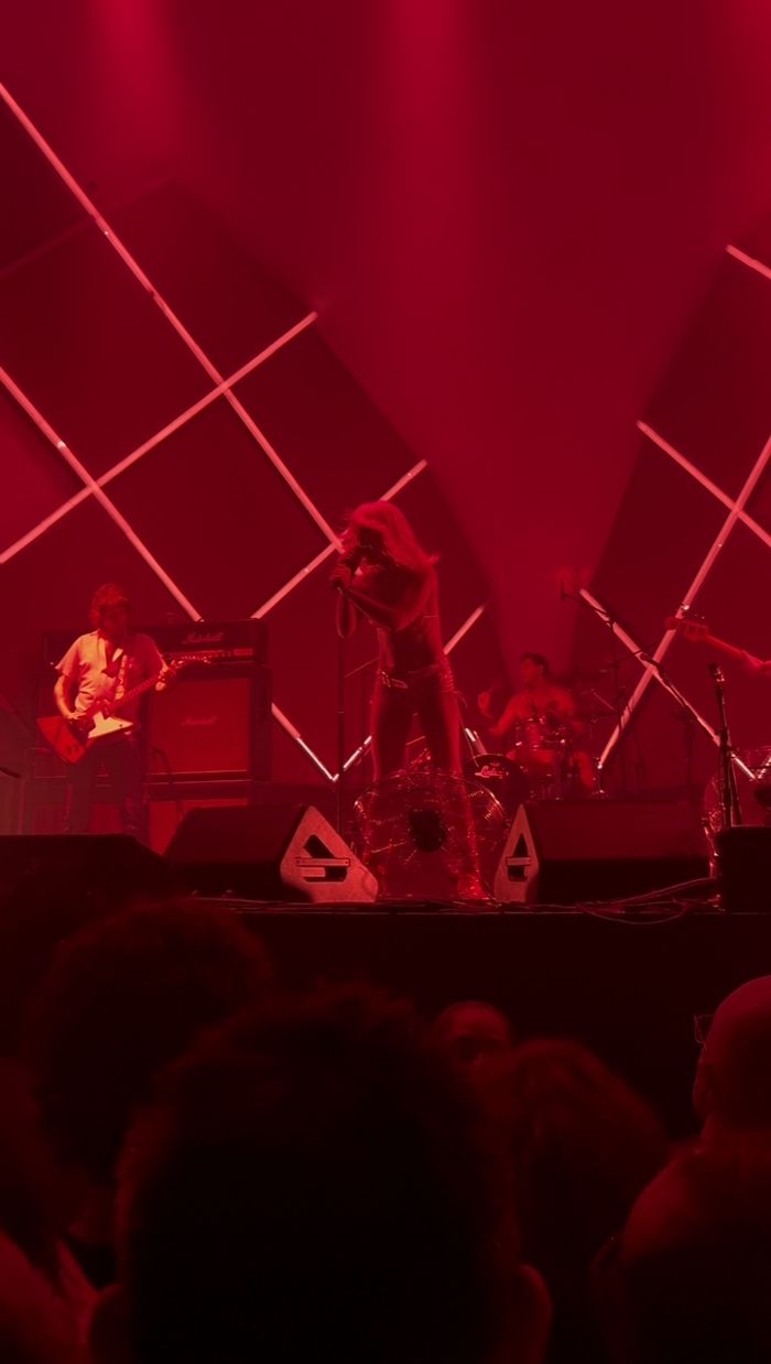 Amy Taylor é uma gigante caminhando sobre o palco, esmigalhando a possível atenção para outra coisa que não fosse ela, vê-la cantando é uma mistura de runaways com o futuro. Agaixa, pula, bate cabeça, da passinhos ao estilo Dolly Parton, sorri, aponta pra plateia e berra. Berra e berra. E sorri de novo, como sorri um sorriso que trafega entre o simpático e o insano. Uma rockstar puro sangue que teria sido exatamente quem ela é em 1975, 1985, 1995, 2005, 2015 e pra nossa graça brilha aqui em 2025, lembrando que ainda dá pra trazer uma juventude que andava achada demais e redescobre o prazer de se perder numa noite de distorção, cerveja e tudo o mais o que vier. Começaram com 7 pauladas dos seus 3 discos em sequência. Até um respiro em Chewing Gun. Pouquíssimas falas com o público, mas nem precisava, ela já dizia tudo. Os sniffers atrás gritavam em excitação vez ou outra, a plateia era outro show a parte: o sentimento de catarse tomou conta do ambiente do primeiro ao último acorde. Como pode uma banda australiana que tem apenas 7 anos e 3 discos ter todas as músicas cantada em uníssono por milhares de brasileiros? Ali tem algo diferente mesmo. Knifey é sempre um espetáculo, pra mim uma das letras mais absolutamente agressivas e poéticas da banda, e responsável por boa parte da fama, devido a aquela interpretação antológica em Glastonbury 2022. Vi meninas e mulheres com lágrimas nos olhos berrando a plenos pulmões. De sentar e admirar. Mas não dava tempo pq logo veio Some Mutts (Can't Be Muzzled) e o lugar veio abaixo pela 12a vez. Mais pauladas, inclusive U Should Not Be Doing That que, pra mim, é a música que ilustra melhor o crescimento de uma banda de rock de garagem pra uma banda verdadeiramente original, inovadora, e com potencial de virar tudo de cabeça pra baixo, no melhor dos sentidos: They Are Doing That. Veio o bis e o "olé olé olé olé Amyl Amyl" em que a banda subiu ao palco visivelmente emocionada e surpresa, cantando junto e admirando o que São Paulo lhes reservava. Balaclava Lover Boogie e Facts pra terminar em batimento máximo. O show termina, a banda se despede rápida e sorridente, as luzes se acendem e o sentimento de catarse termina com uma incredulidade coletiva do que tinha acabado de acontecer… todos sabiam: uma das novas maiores bandas do mundo havia destilado uma porradaria absolutamente incrível naquele pequeno palco, em 4 instrumento sem frescura e sem clichês. Amyl And The Sniffers é passado, presente e futuro do rock mainstream num mundo em que ele rareia... mas volta melhor do que nunca.