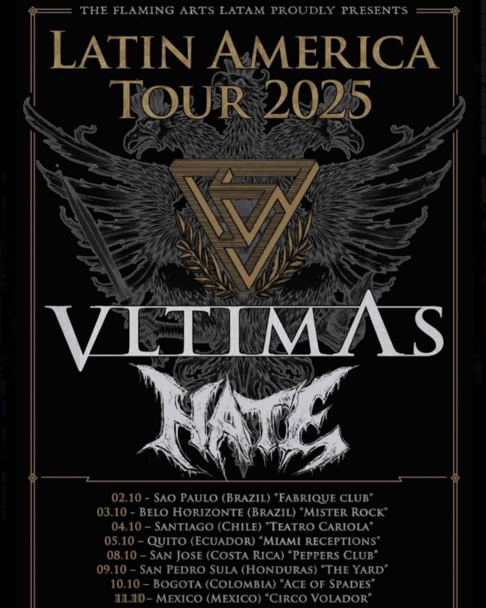 O Vltimas, grupo formado pelo vocalista David Vincent (I Am Morbid, ex-Morbid Angel), o guitarrista Rune "Blasphemer" Eriksen (Aura Noir, Blood Fire Death, ex-Mayhem) e o baixista Ype TWS (Escadron), anunciou uma turnê sul-americana ao lado dos poloneses do Hate. A sequência de shows começará no dia 2 de outubro, em São Paulo, e terminará no dia 11 do mesmo mês, com um show na Cidade do México.