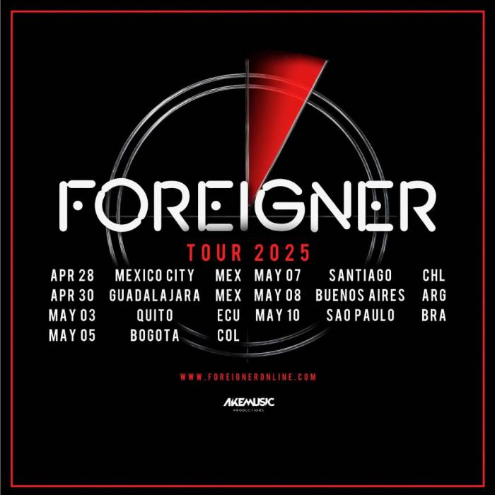 O Foreigner confirmou especulações recentes sobre uma turnê latino-americana entre o final de abril e início de maio de 2025. O Brasil receberá a última apresentação no dia 10 de maio, em São Paulo. México, Equador, Colômbia, Chile e Argentina são as outras paradas do grupo, que realiza sua turnê de despedida.