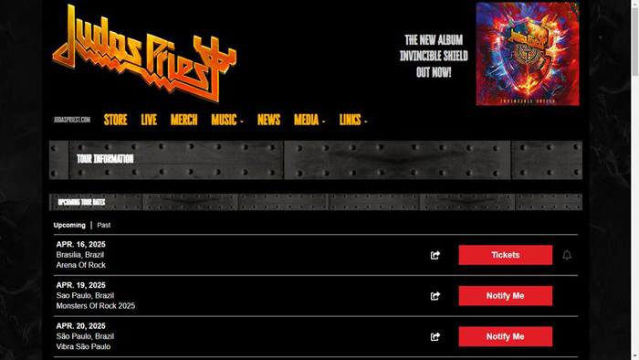 Antes dos eventos na capital paulista, o grupo participará do Arena of Rock, em Brasília, dia 16 de abril. Por enquanto, são os únicos compromissos da próxima passagem por terras nacionais. Eles fazem parte da turnê "Shield of Pain", que segue divulgando o álbum "Invincible Shield" (2024), além de celebrar 35 anos de "Painkiller" (1990).