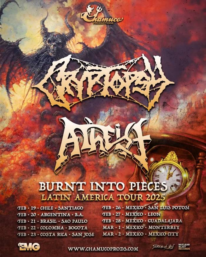 As bandas Cryptosy e Atheist anunciaram turnê conjunta pela América Latina entre fevereiro e março de 2025. Serão 10 apresentações, metade delas no México. O Brasil receberá apenas um show. Ele acontece dia 21 de fevereiro, em São Paulo. O local e detalhes sobre ingressos serão revelados nos próximos dias.