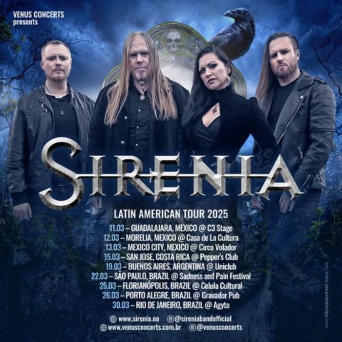Turnê latino-americana do Sirenia terá quatro datas no Brasil em março de 2025