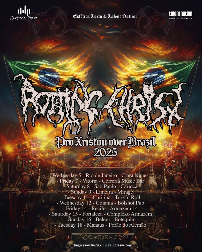 O Rotting Christ, que esteve em turnê pelo Brasil no início deste ano, retornará ao Brasil em fevereiro de 2025 na turnê de divulgação do álbum "Pro Xristou". Liderada pelos irmãos Sakis e Themis Tolis, a banda fará dez apresentações em solo brasileiro.