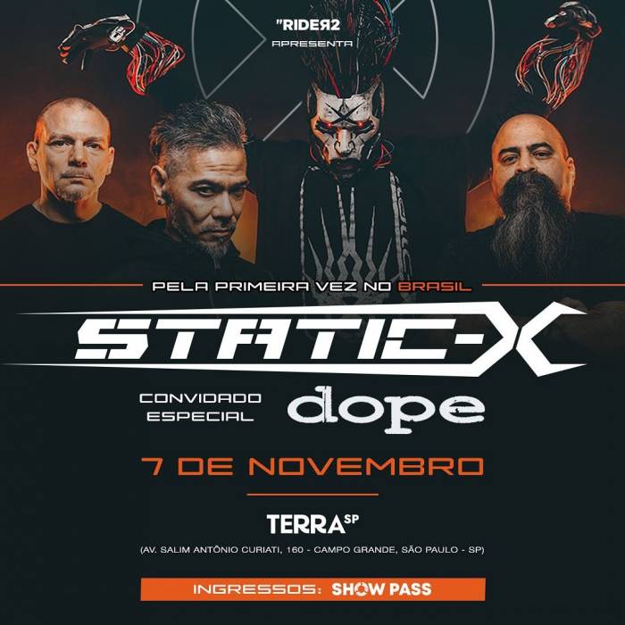 O Static-X, uma das bandas mais proeminentes da cena do metal industrial dos Estados Unidos, confirmou que se apresentará no Brasil no dia 7 de novembro, em São Paulo. O show será em conjunto com a banda Dope, no Terra SP. Ingressos já estão a venda pelo site da Showpass.