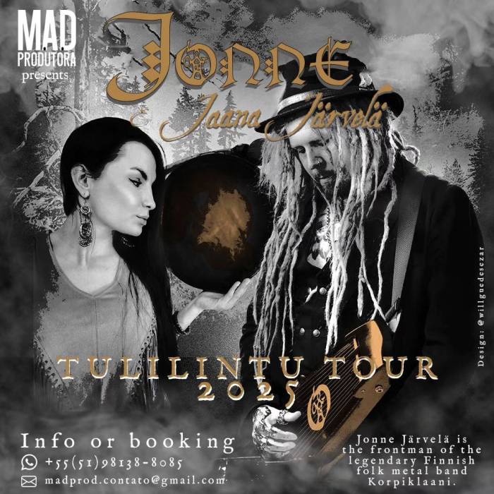 A M.A.D Produtora anunciou a turnê sul-americana do Jonne Järvelä, vocalista e multi-instrumentista do Korpiklaani, que virá com seu projeto solo de música folk, chamado Jonne.