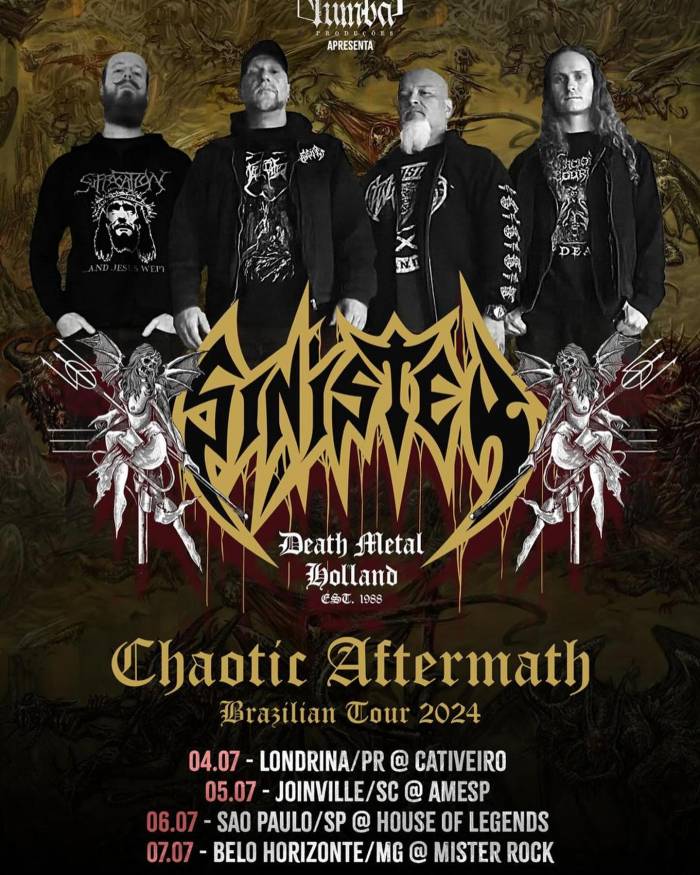"A banda holandesa Sinister, um dos grandes nomes do Death Metal mundial em atividade desde 1988, retorna ao Brasil para brutalizar em uma turnê com quatro shows que serão memoráveis. E um aviso importante: devido ao desastre climático ocorrido no RS, houve alteração na turnê e o show que seria em Porto Alegre foi transferido para Londrina", afirmou a produtora em comunicado.