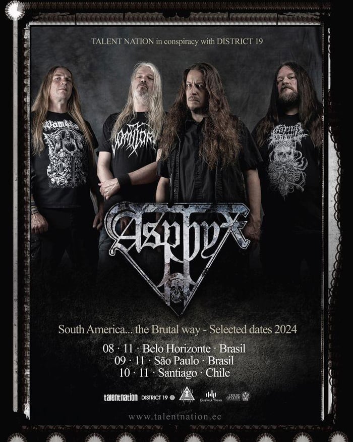 A agência Talent Nation anunciou que a banda holandesa de death metal Asphyx fará três apresentações na América do Sul em novembro de 2024, sendo duas no Brasil, e devem retornar ao continente para mais shows em 2025.