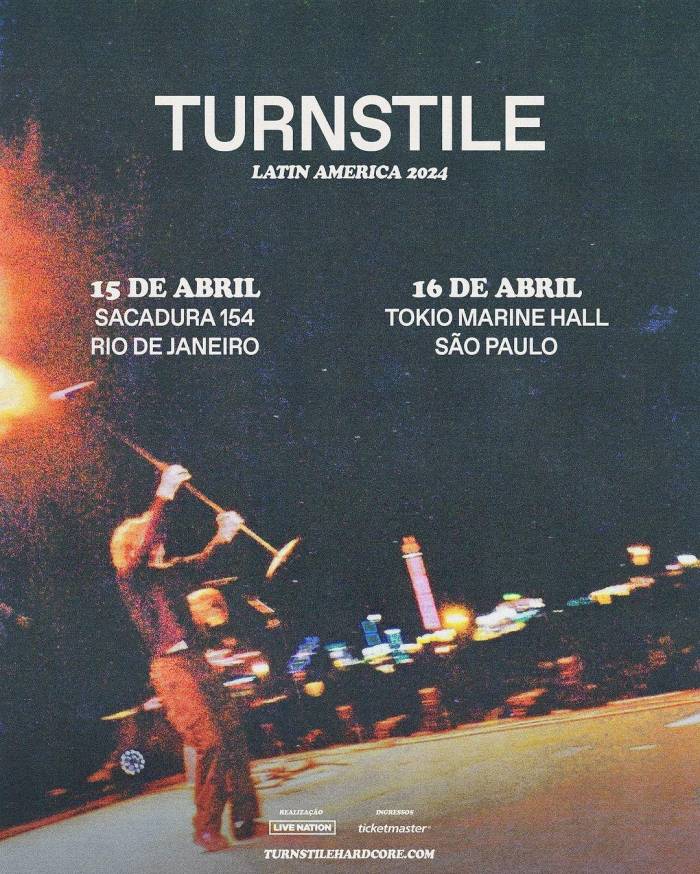Um dos grandes destaques do Hardcore Punk nos últimos anos, a banda norte-americana Turnstile retorna aos palcos brasileiros para mais duas apresentações. Um dos grandes destaques da edição 2022 do Lollapalooza tocará no dia 15 de abril no Rio de Janeiro e no dia 16 em São Paulo.