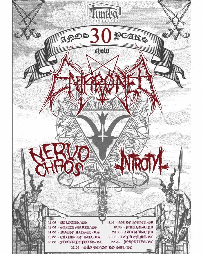 A veterana banda de black metal Enthroned retornará ao Brasil para celebrar seus trinta anos de carreira. Nesta comemoração participarão também a banda mexicana de death metal Introtyl, e o grupo paulistano Nervochaos.