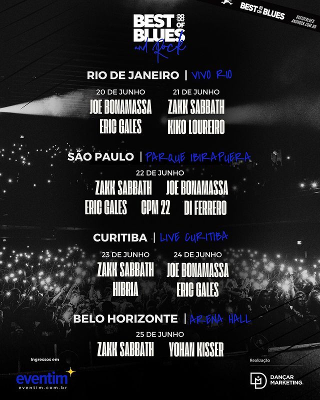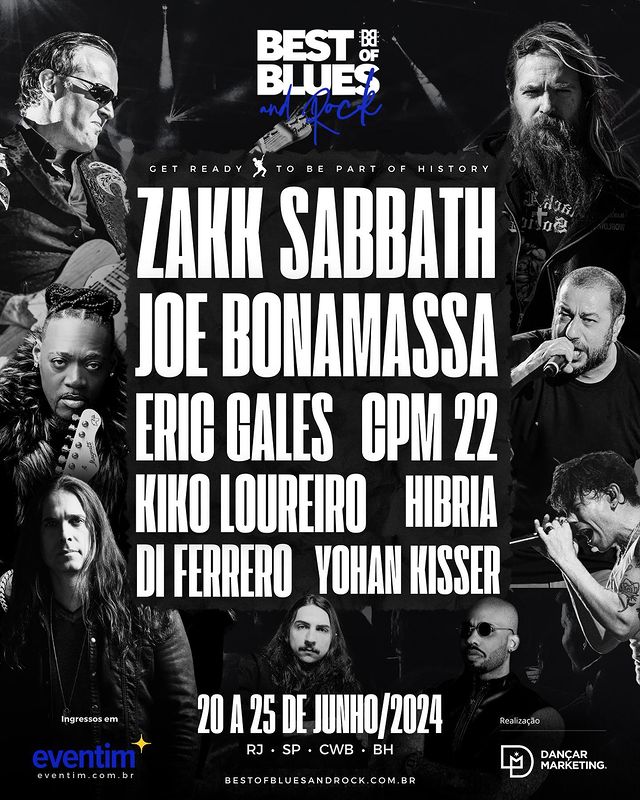 A organização do festival Best of Blues and Rock anunciou nesta terça-feira (26 de março) o line-up da sua edição 2024, que acontecerá entre os dias 20 e 25 de junho, em quatro cidades brasileiras: Rio de Janeiro, São Paulo, Curitiba e Belo Horizonte. Zakk Sabbath, Kiko Loureiro e Joe Bonamassa são algumas das atrações que se apresentarão no evento.