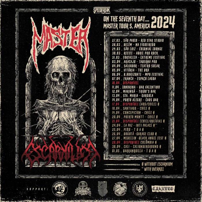A SpeedFreak Agency anunciou uma turnê sul-americana do Master, veterano nome do death metal norte-americano, ao lado da Escarnium, banda brasileira radicada na Alemanha.