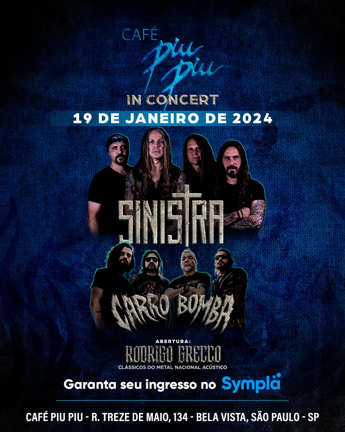 Em sua primeira edição, apresentam-se no Café Piu Piu duas bandas em destaque no cenário do metal nacional: a Sinistra e o Carro Bomba. O evento acontece no dia 19 de Janeiro de 2024 e conta com a abertura de Rodrigo Grecco (Casa das Máquinas) tocando clássicos do Metal Nacional no formato acústico. Ao final, os músicos ainda prometem se reunir para uma Jam Session.