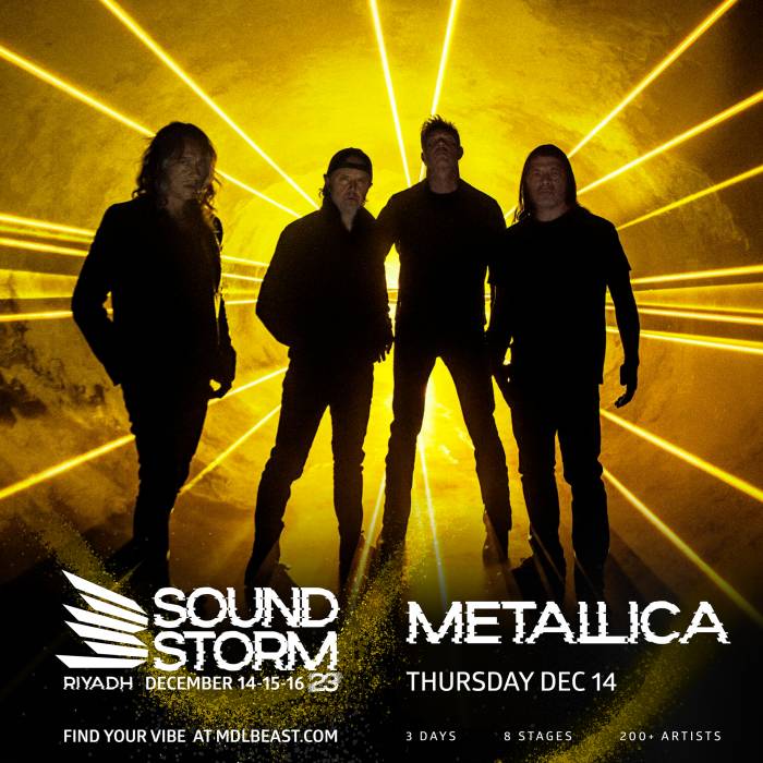 A banda Metallica vai tocar pela primeira vez na Arábia Saudita. O grupo liderado por James Hetfield e Lars Ulrich é uma das atrações do Soundstorm Festival, festival que será realizado entre 14 e 16 de dezembro deste ano, em Riade, capital do citado país. O quarteto se apresentará no primeiro dia do evento.