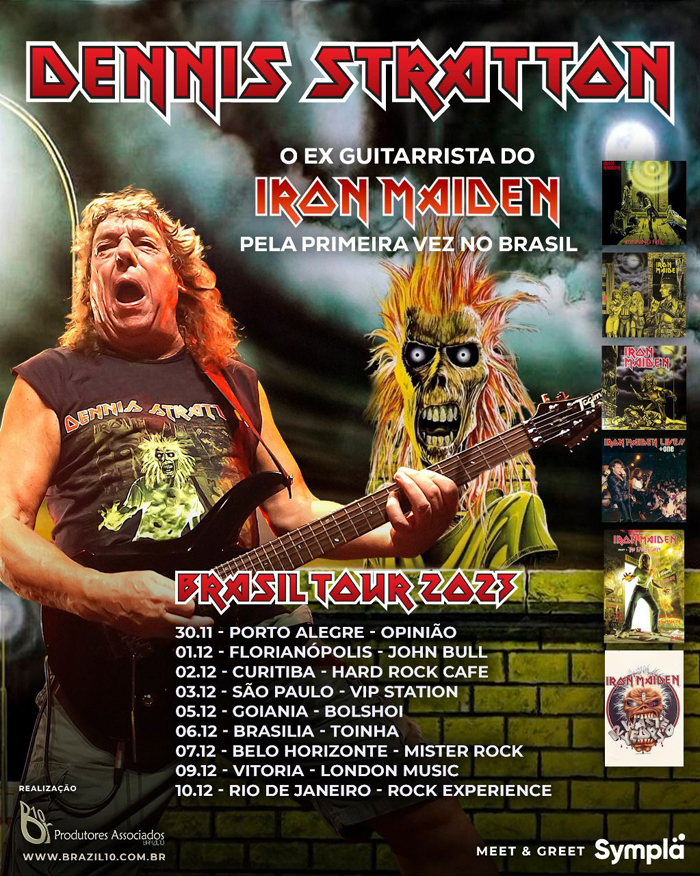 Confirmando o que já havia sido informado pelo próprio Dennis Stratton no começo deste ano, o ex-guitarrista do Iron Maiden fará uma turnê pelo Brasil entre o finalzinho de novembro e a primeira quinzena de dezembro de 2023, confira no pôster: