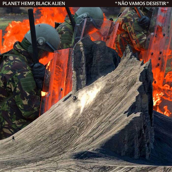 O Black Alien participa da gravação de "Não vamos desistir", um grito de resistência com versos diretos como "Acho que nunca estarei pronto para o que está por vir / Mas, se eu cair, eu me levanto porque não vamos desistir / Um brinde aos idiotas e toda sua ganância / Alimentando o caos e sufocando as esperanças / Mas nós não vamos desistir, não". Um coral entoa o refrão da música para reforçar a mensagem de que a luta é coletiva.