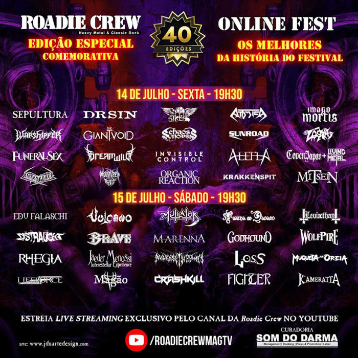 A revista Roadie Crew, em parceria com a produtora Som do Darma, apresentam na sexta-feira, dia 14 de Julho, e também no sábado, dia 15 de Julho, às 19h30, a 40ª edição do "Roadie Crew - Online Festival".