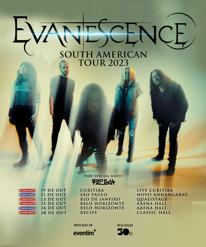 Com isto, fica assim a turnê do Evanescence no Brasil em 2023: