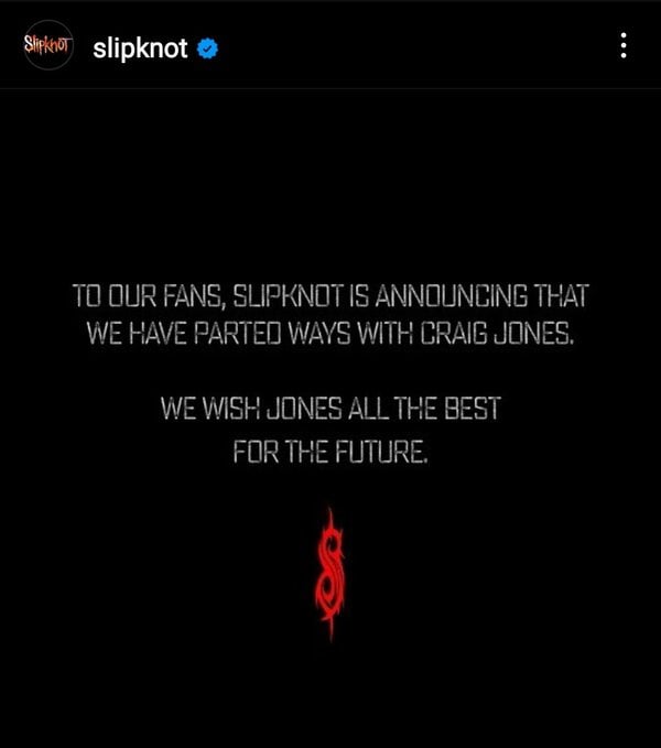 Poucos minutos depois de anunciar a saída de Craig Jones, sem divulgar maiores detalhes, o Slipknot simplesmente apagou das redes sociais os posts onde divulgavam a informação. Veja a seguir um print da postagem, agora apagada.