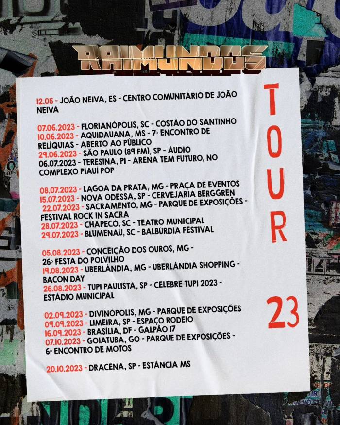 A banda brasileira Raimundos anunciou nesta segunda-feira (8 de maio) as datas da "Raimundos Tour 23". A turnê, primeira do grupo após a morte do baixista Canisso, será realizada de maio até outubro e passará por cidades das regiões Nordeste, Sudeste, Centro-Oeste e Sul do Brasil.