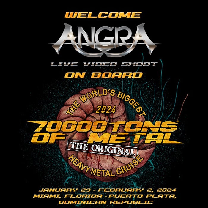ANGRA é a primeira das 60 bandas confirmadas para 70000TONS OF METAL 2024. Esses maestros do power metal farão a história do Heavy Metal em alto mar quando navegaremos de Miami, FL até a bela Puerto Plata, na República Dominicana, enquanto eles tocarão seu próximo álbum na íntegra em nosso "Pool Deck Stage", — a maior estrutura de palco ao ar livre para navegantes.