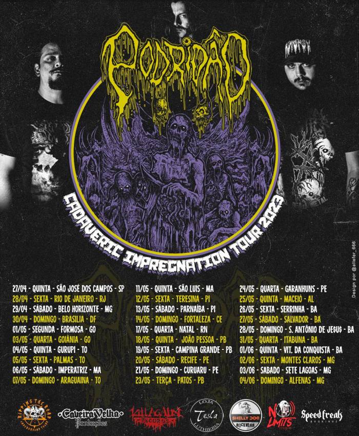 O trio de death metal paulista PODRIDÃO anunciou a "Cadaveric Impregnation Tour" para divulgação do lançamento do terceiro disco do grupo, "Cadaveric Impregnation" (2023).