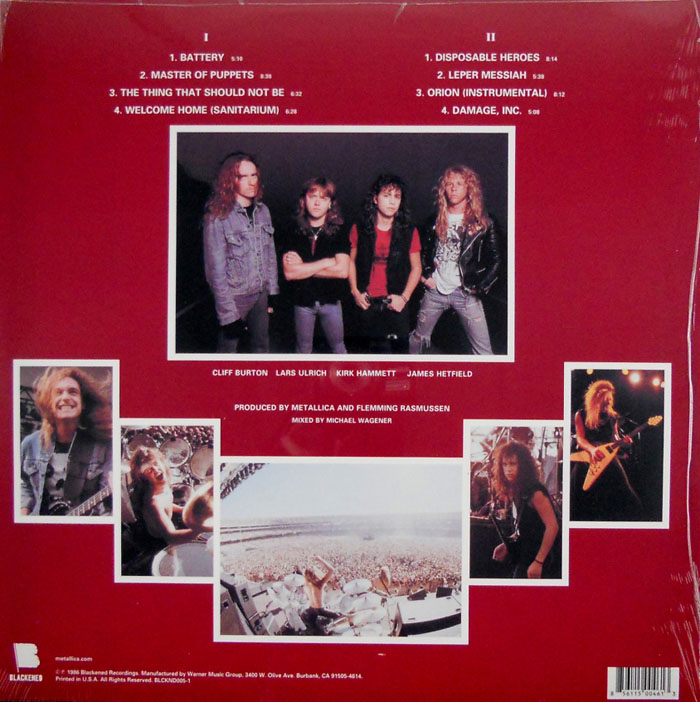 A parte de trás da capa do disco, por sua vez, mostra fotos dos quatro integrantes do Metallica na época. Se você reparar com atenção, vai notar que o guitarrista Kirk Hammett está com cara de poucos amigos. E de fato, o músico estava cabreiro quando a foto foi registrada.