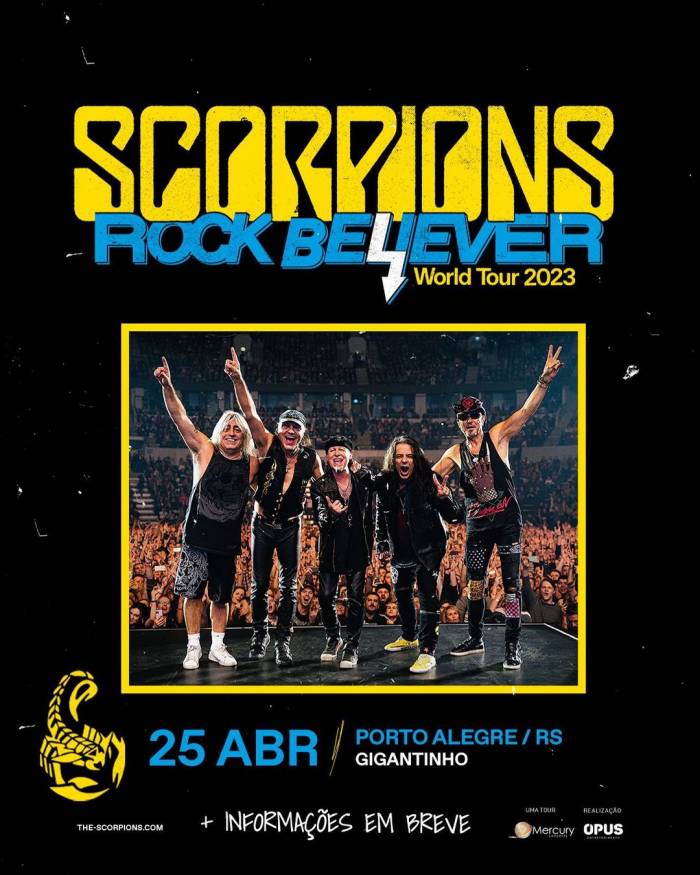 "Scorpions chega a PORTO ALEGRE com a Rock Believer World Tour 2023!! Dia 25 de abril no Gigantinho. Mais informações em breve", afirmou a produtora em seus posts.