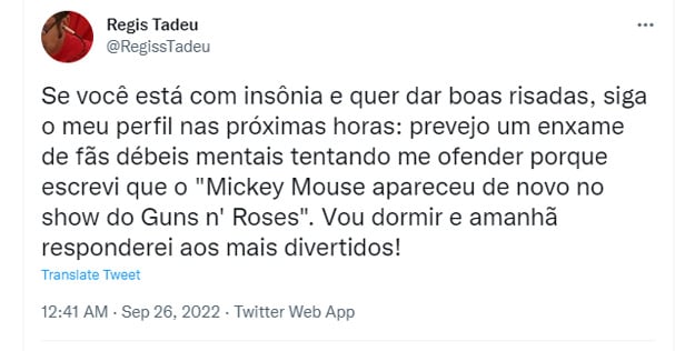 Fãs do Guns N' Roses tretam com Regis Tadeu nas suas redes sociais