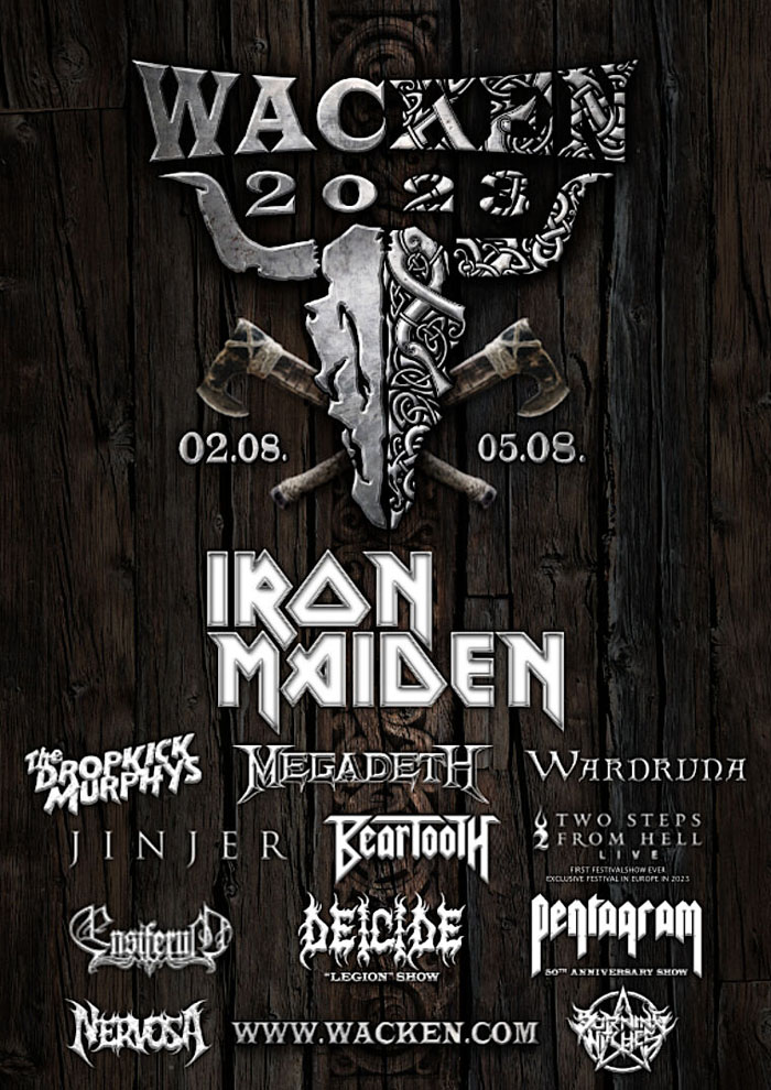 A organização do Wacken Open Air anunciou as primeiras atrações confirmadas para a edição de 2023: Iron Maiden, Megadeth, The Dropkick Murphys, Wardruna, Jinjer, Beartooth, Two Steps From Hell, Ensiferum, Deicide, Pentagram, Nervosa e Burning Witches. Outros nomes ainda serão anunciados posteriormente.