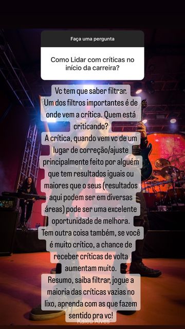 Todo músico que está começando eventualmente vai se deparar com críticas. O guitarrista Marcelo Barbosa, do Angra, comentou no seu Instagram oficial algumas dicas sobre como lidar com esse tipo de comentário.