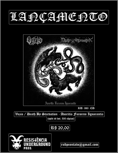 O selo Resistência Underground Distro & Prod. divulga seu mais novo lançamento, o split "Avaritia Furorem Ignorantia" das bandas de black metal Vazio e Death by Starvation (ambas de São Paulo). O material inicialmente havia sido lançado apenas no formato LP, num lançamento europeu com parcerias entre vários selos e agora o mesmo ganha uma versão em CD.