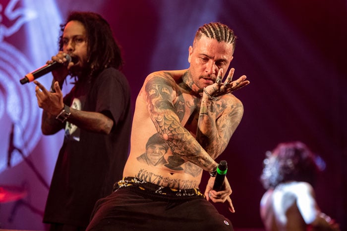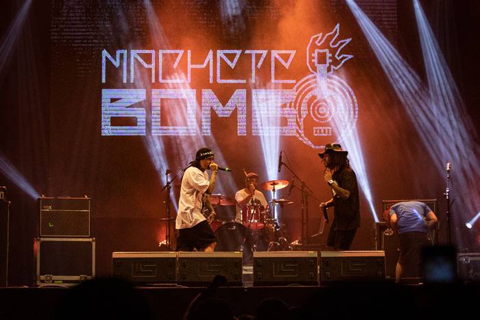 Os curitibanos do Machete Bomb vieram em seguida. Fundada em 2013, o grupo tem como aposta sonora misturar rap, punk, metal e samba em doses equilibradas. Ao longo de uma hora de show a banda explorou boa parte de sua discografia, mas foi a inusitada e bem-vinda versão para "Ratamahatta" - hino do Sepultura retirado do álbum "Roots" - que causou momento de catarse coletiva de uma apresentação que contagiou o público.
