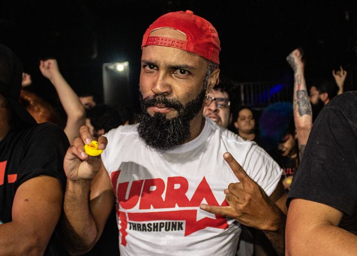 Com a casa mais cheia, quem se apresentou na sequência foi o Surra. Formado por Léo Mesquita (guitarra e voz), Guilherme Elias (baixo e voz) e Victor Miranda (bateria), o trio é um dos melhores exemplares da cena crossover da atualidade. Com performance veloz e eletrizante, o grupo, ao vivo, promove momentos de catarse coletiva através de canções raivosas que versam contra o reacionarismo brasileiro e as políticas de extrema direita. O álbum Escorrendo Pelo Ralo (2019) foi o carro chefe da apresentação. De lá vieram faixas como "Anestesia", "Bom Dia Senhor", "Caso Isolado", "Do Lacre ao Lucro", a faixa título, "Mais um Refém", "O mal que Habita a Terra" e "Ultraviolência" que foram cantadas em uníssono. Na reta final faixas como "Daqui pra Pior" (do disco "Tamo Muito na Merda") e o single "Parabéns aos Envolvidos" encerraram a apresentação de forma apoteótica, com direito a chuva de patinhos (!) de borracha.