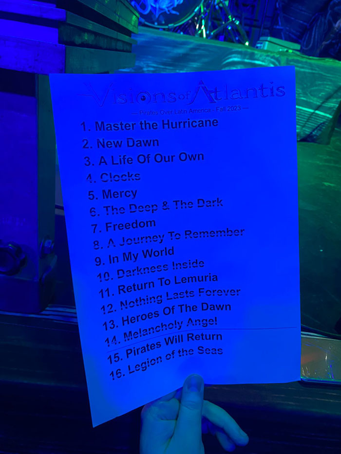 Fato é, que o Visions of Atlantis atracou em São Paulo, no Hangar 110, e proporcionou uma noite repleta de momentos memoráveis. O único ponto negativo foi saber que o show acabou após a música "Legion of The Seas" do álbum "Pirates", em que a Clémentine Delauney empunhou, com muito orgulho, a bandeira da banda, marcando a despedida.