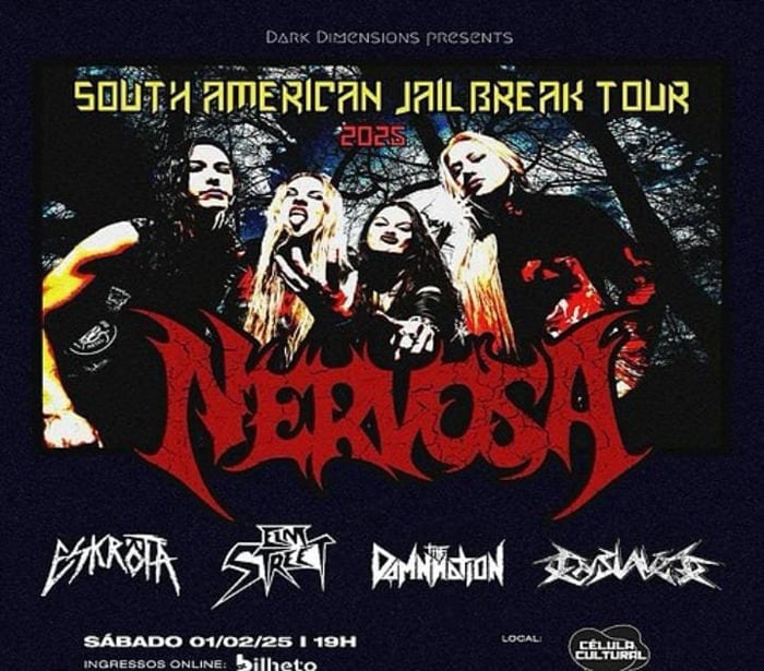 Florianópolis foi uma das cidades escolhidas pela NERVOSA, em sua turnê sul-americana (foram 8 shows no Brasil, 1 na Argentina e 1 no Chile). O show foi no dia 1º de fevereiro, um sábado, no Célula. A banda neste ano vai rodar o mundo em comemoração aos seus 15 anos, e a tour não poderia ter começado de forma mais emocionante, no Brasil.