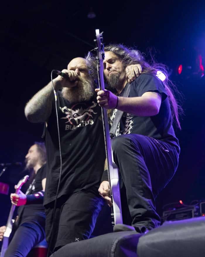 Mas a melhor performance da noite, disparado, ficou com "The Toxic Waltz". Holt primeiro provoca o público com trechos de "Raining Blood" e "Motorbreath", o que por si só já faz os fãs gritarem muito, para então explodirem na performance insana da música. Dukes aqui mostrou muita vontade e controle de palco enorme, puxando os fãs para o maior mosh da noite.