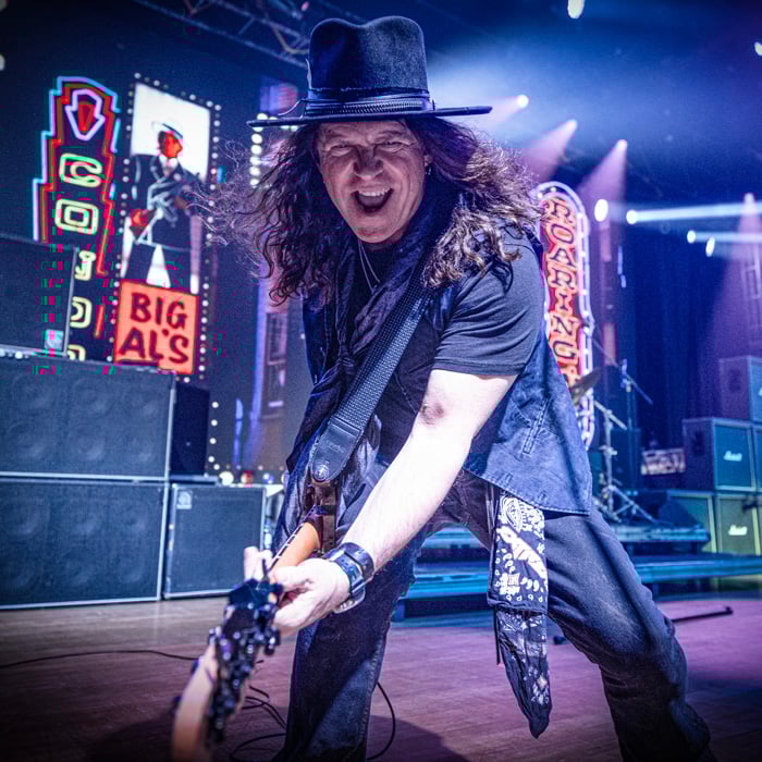 Com o público ainda acessando o Auditório Araújo Vianna e se posicionando em suas poltronas, alguns minutos após as 21 horas, as luzes se apagaram e o telão exibiu a capa de "Six", último álbum do Extreme, lançado em 2023, já indicando o peso que o novo trabalho teria no repertório. O repertório começou com "It ('s a Monster)" e "Decadence Dance", clássicos do disco "Pornograffitti", de 1990, mostrando que a banda mantém firme a conexão com sua fase mais consagrada. "Rebel" foi a primeira de "Six" a aparecer no set, reforçando a boa recepção do material recente, que teve continuidade com "Rest in Peace" e "Am I Ever Gonna Change", ambas do álbum "III Sides to Every Story", de 1992. A pesada "Thicker Than Blood", que dá nome à turnê, evidenciou a sonoridade mais agressiva da fase atual, precedendo um dos momentos mais esperados da noite: a incrível "Play With Me", executada com perfeição, reforçando o virtuosismo característico de Nuno e empolgando todos os fãs presentes.